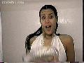 ** NEWLY REMASTERED ** Gorgeous Hispanic Jackie`s debut messy video! Wearing a white top and blue shorts, she gets totally covered in slime followed by several real pies!